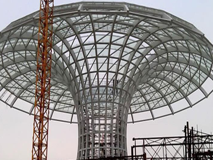 二、球形网架结构因其结构新颖,受力合理,自重轻、用钢量低等优点。如大型体育场馆球形贵溪螺栓球网架、公共场馆球形网架、电厂贵溪螺栓球网架、水泥工业球形网架、仓储物流球形网架、贵溪干煤棚工业球形网架、贵溪收费站贵溪加油站球形网架、展览中心、影剧院、商场、航站楼、候车厅、工厂贵溪车间、仓库、电视塔等球形螺栓球节点网架。国内球形网架结构主要分为:贵溪焊接球节点网架及螺栓球节点网架两种。螺栓球节点网架其构件工厂内加工量较大,现场安装便捷,适用于现场工期紧,贵溪施工条件、用电量受制约,网架形状复杂、贵溪杆件定位困难的异形结构。螺栓球节点球形网架系统基本由贵溪杆件、螺栓球、支撑支座等组成。按照节点形式可分为交叉贵溪桁架体系、四角锥体系、三角锥体系等。支撑方式多为固定支座支撑。对于大面积、大跨度及有特殊受力或伸缩要求的网架结构可采用橡胶支座、滑移支座、球铰支座等支撑形式,以满足结构自身的受力稳定、均衡,便于内力释放等设计要求。